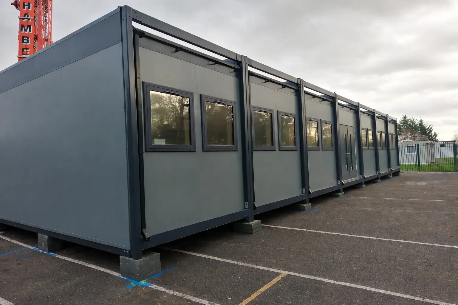The site contained existing underground services which restricted where foundations could be installed. A survey was carried out before works began, and temporary pad foundations were positioned to avoid conflicts with buried pipes and cables. This required adjustments to the original foundation layout while still maintaining the correct structural support for the modular building. Accuracy at this stage was critical to ensure the building could be installed without delays.