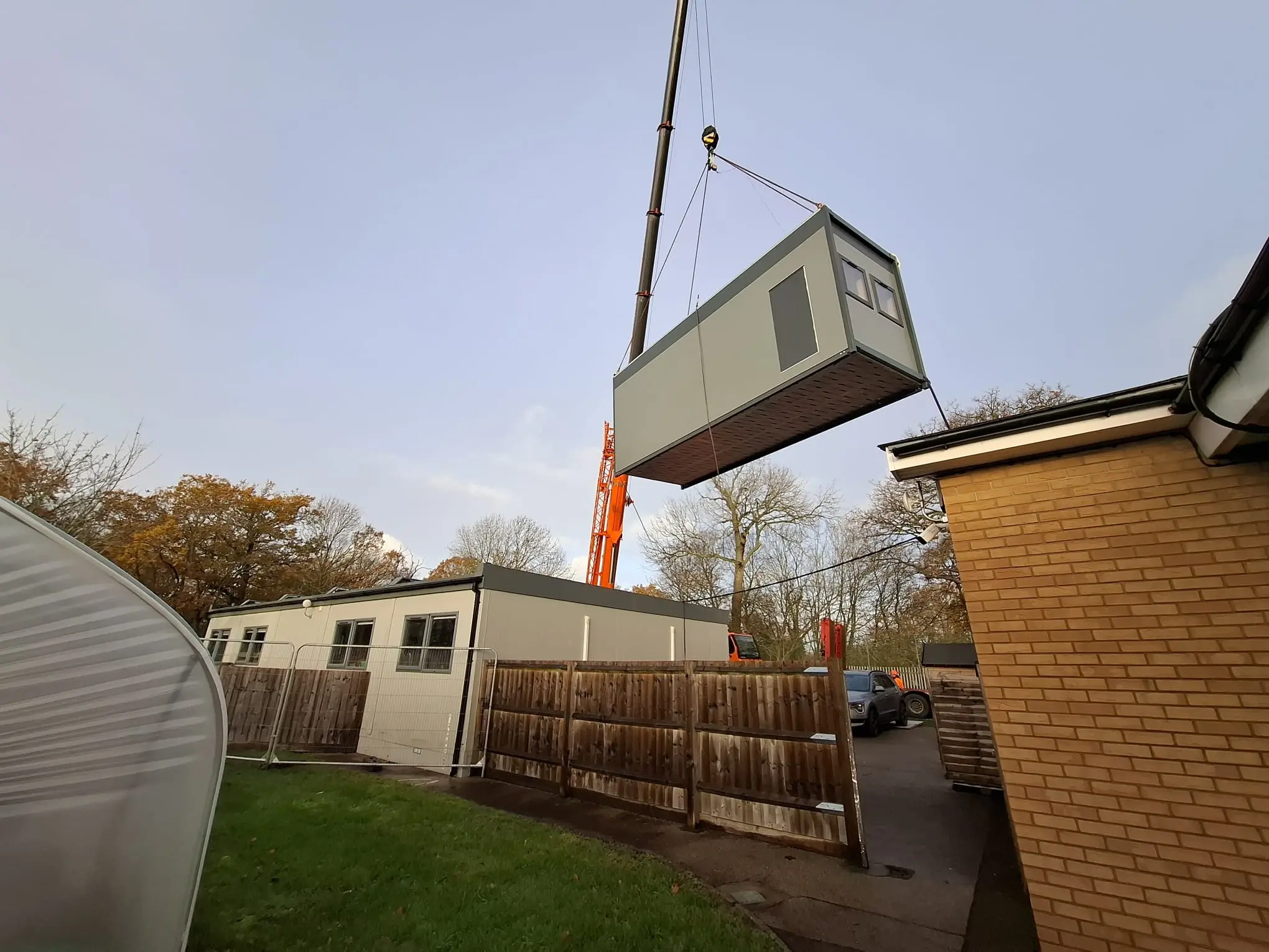 The school required additional teaching space within a very short timescale due to an increase in pupil numbers. From initial instruction to completion, the available programme was approximately five weeks, leaving little margin for delays. To achieve this, the team used readyto-deploy hire buildings and carefully coordinated all stages of manufacture, delivery, groundwork, and installation to ensure the building could be handed over on time. Additional working hours and weekend labour were required to maintain progress.